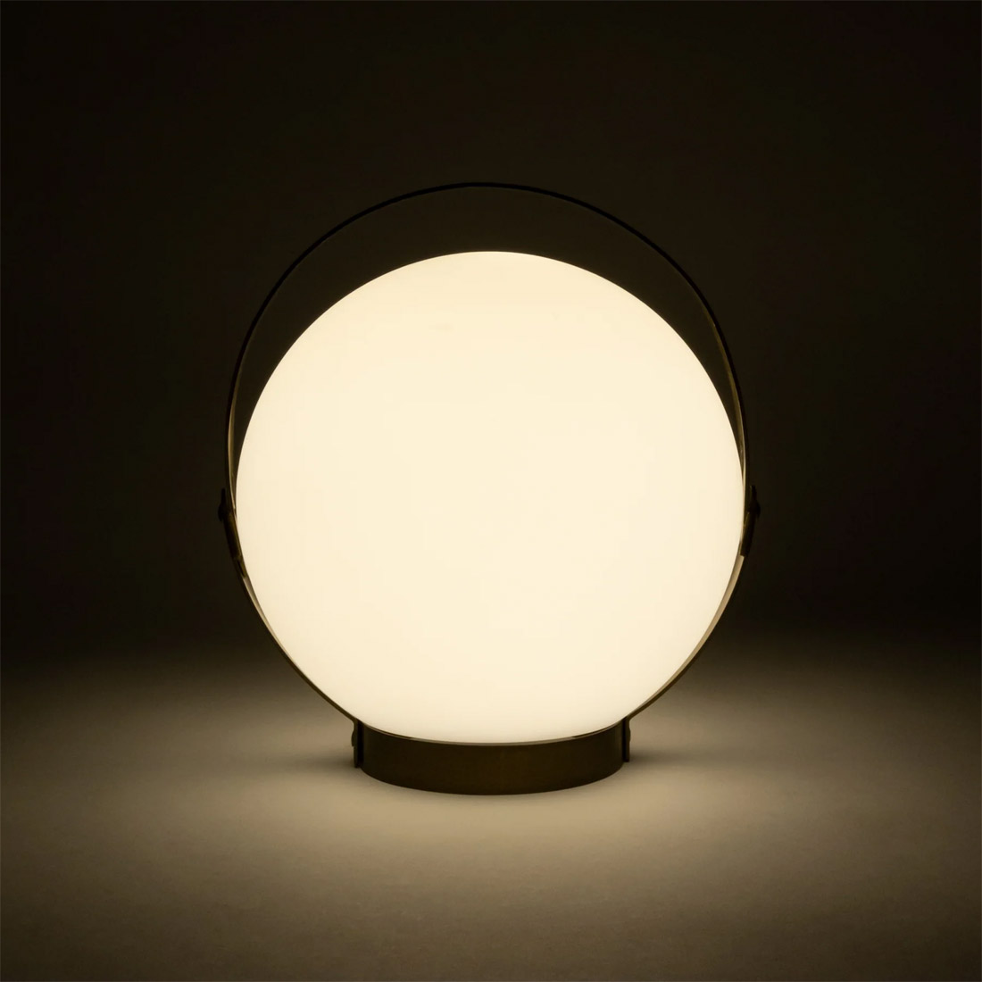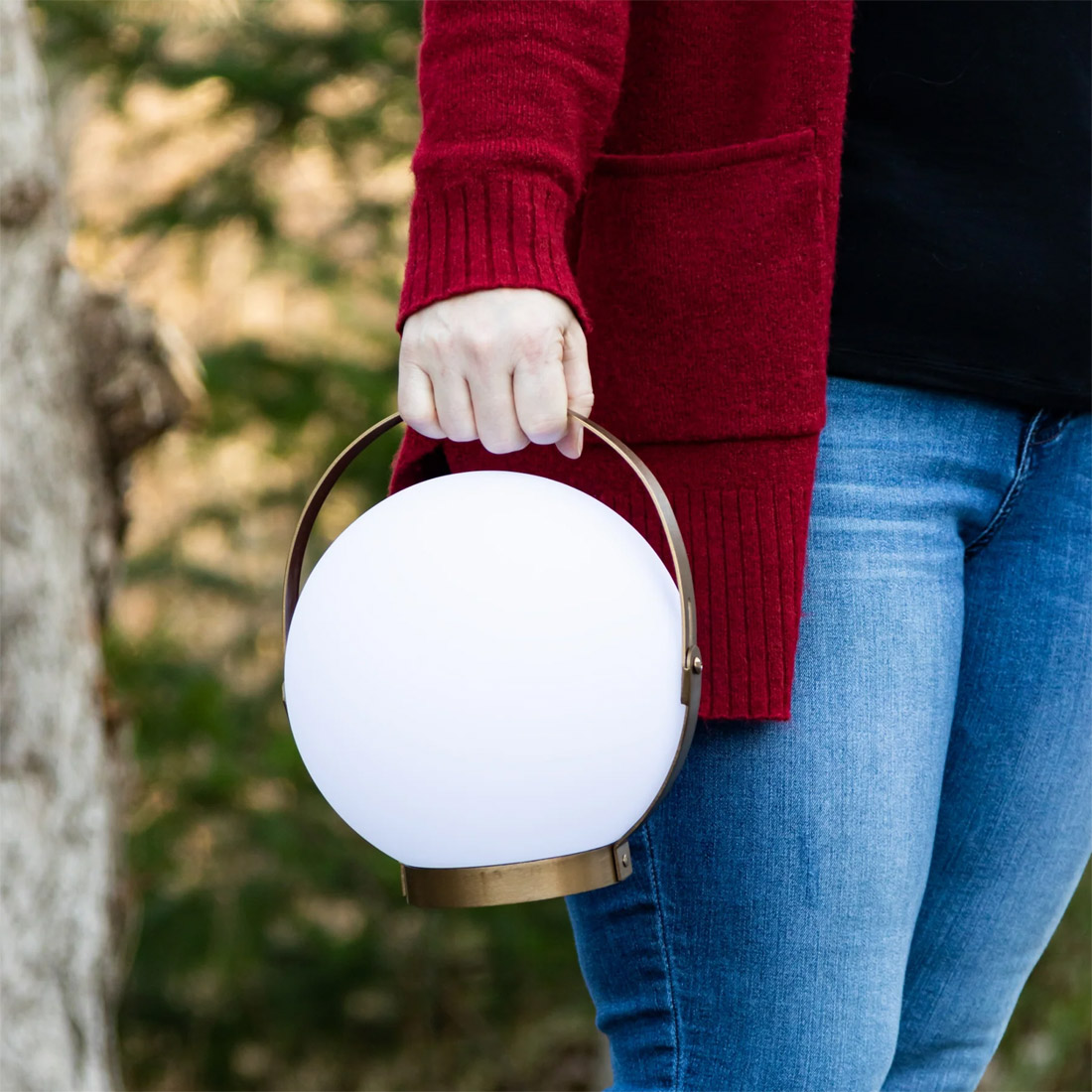 Elevate the mood with the Moonrise Lantern, a minimalist and modern portable lamp designed to bring warmth and style to any setting. Crafted with a sleek anodized aluminum handle in a bronzed finish that slides up for portability and down for easy storage, the Moonrise is as functional as it is beautiful. Completely cordless, it runs 10-12 hours on a single charge. Recharges effortlessly with the included USB power cord and wall adapter. Built with a durable, weather-friendly design, this lantern is ideal for year-round indoor and outdoor use. 6.7"W x 9.4"H