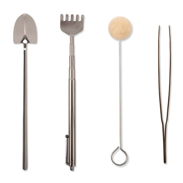 Crafted from stainless steel, this 4-piece tool kit includes a precision tweezer, rake, brush, and shovel to help you create and maintain a beautiful, thriving terrarium. Perfect size for houseplants.