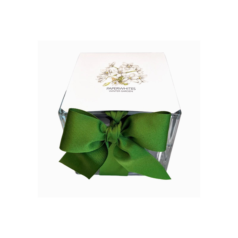These flowers, with petals as thin as paper, are easy to grow and have been given as Holiday and Christmas gifts dating back to the 1700s. This Paperwhites Winter Garden kit includes cast glass planter with hand-tied grosgrain ribbon, 3 paperwhite bulbs (Narcissus ziva), soil-less growing medium and directions. Plant by 01/31/2026.