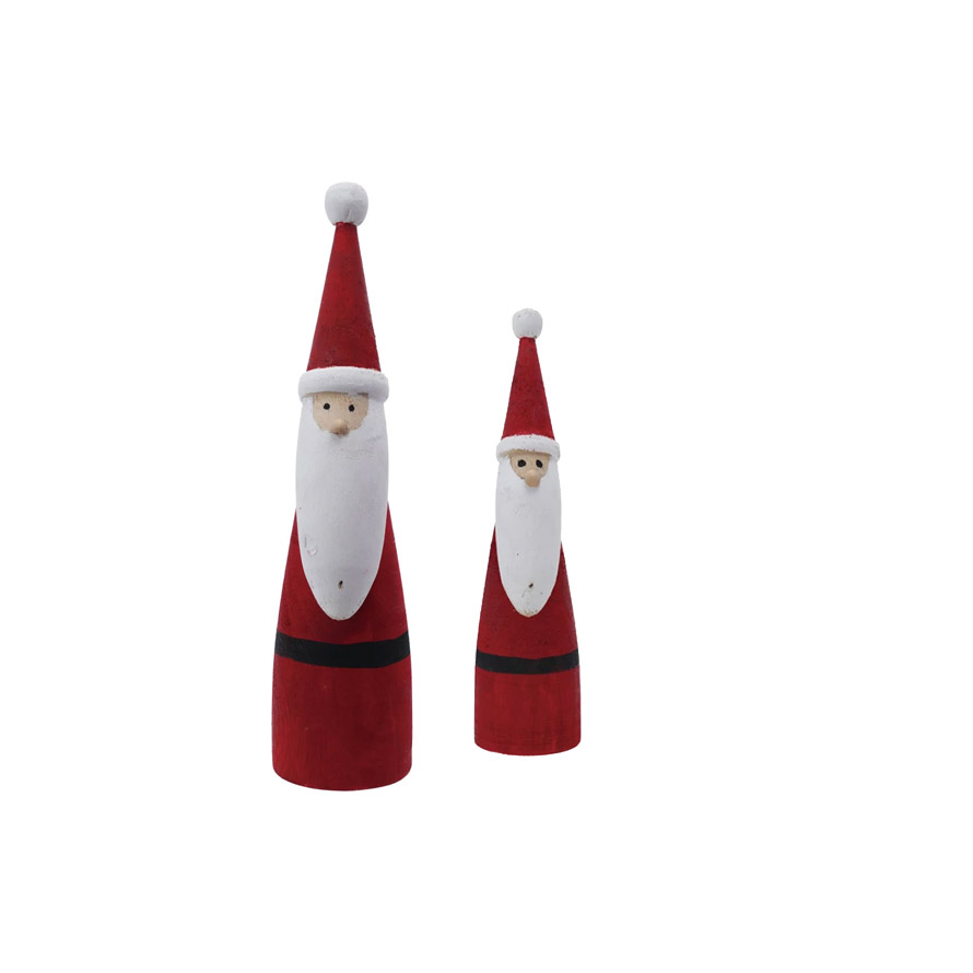 Decorate a mantel, shelf or table with this whimsical Santa carved from wood and painted in red and white. 2.75"D x 11"H