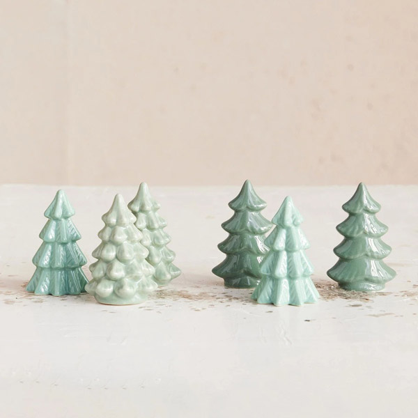 This adorable green stoneware tree features a simple, classic design. Various styles in shades of green. Assorted 1 piece; style and color will vary. 2.5"H.